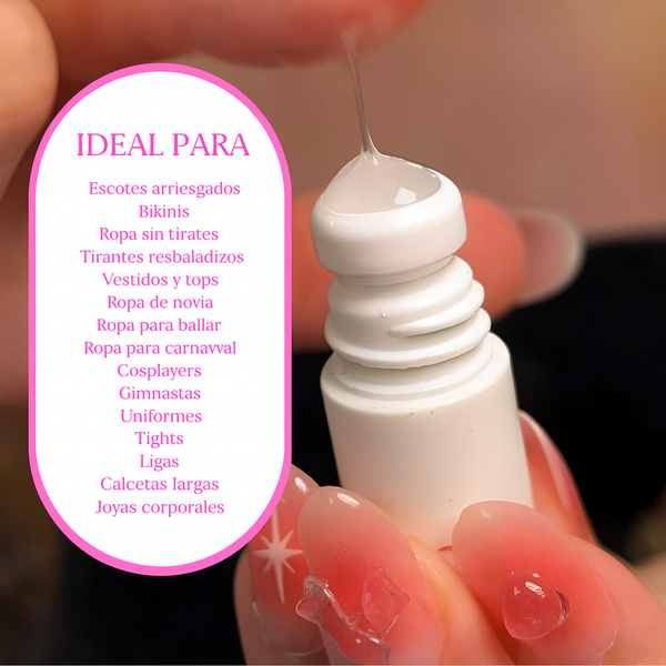 Este adhesivo corporal garantiza que tu ropa se mantenga fija, permitiéndote moverte con confianza y sin preocupaciones.